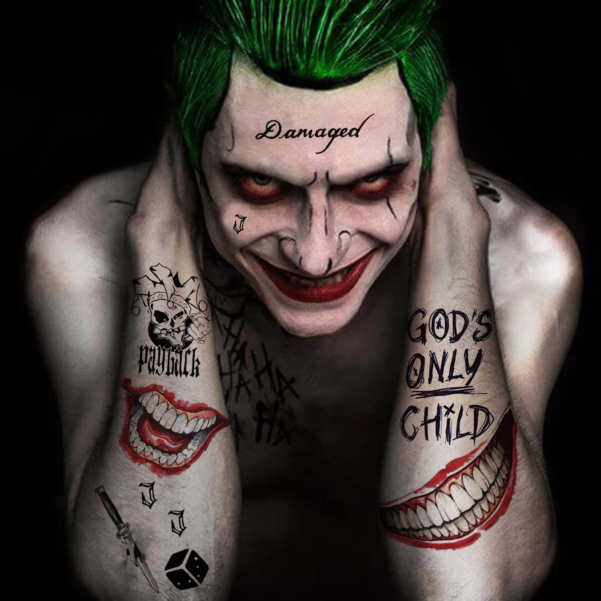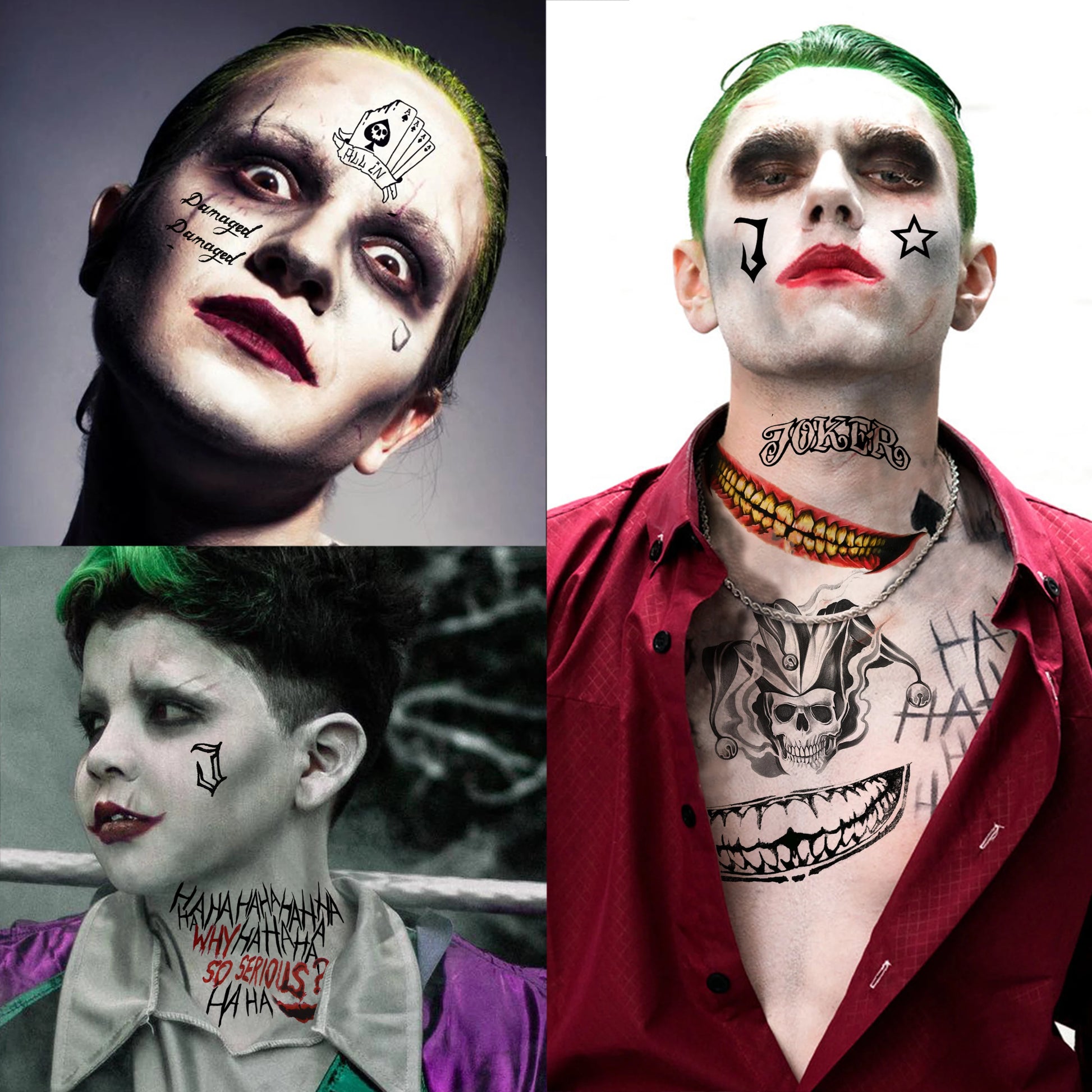 5 Sheets Crazy Joker Halloween Tattoos Evil Skull