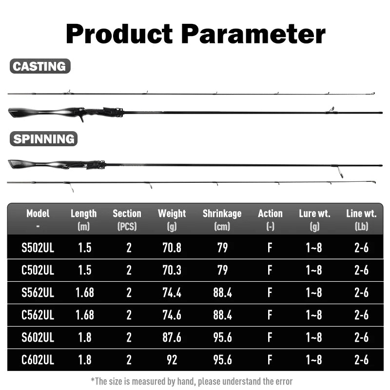LEYDUN Black Creek Fishing Rod 2 Section Spinning Casting 1.5/1.68/1.8m