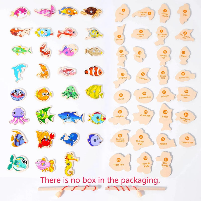 Montessori Wooden Magnetic Fishing Toys - Marine Cognition, Early Edu,